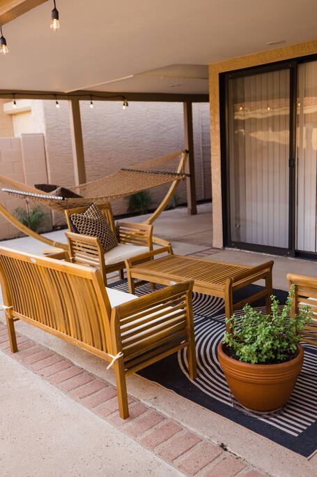 Welcome to The Bougainvillea Villa — Your Stylish Desert Escape Follow us on IG: @the.bougainvilleavilla This sun-filled, design-forward end-unit townhome is the perfect blend of style, comfort, and convenience. Whether you're here to soak up the Arizona sunshine, explore world-class dining, or simply relax in a peaceful setting, this thoughtfully curated space is ready to host your perfect stay. Sleep in Comfort & Style We’ve outfitted the villa with high-end touches to ensure you rest well and wake refreshed: - Helix mattresses (1 King, 2 Queens) for optimal support and comfort - Beckham Hotel Collection pillows - Blackout curtains in all bedrooms - Quality linens, cozy throws, and modern design details in every room Cook, Dine, and Unwind Fully stocked kitchen with all the essentials (and then some): - Outdoor BBQ grill for sunset dinners - Indoor dining + bar seating - Washer & dryer in-unit for your convenience Resort-Like Amenities - Community heated pool & hot tub (NEVER crowded!) - Outdoor shower and well-maintained pool area, cared for by friendly, mostly retired neighbors - Private hammock and patio for lounging Easy Access, Prime Location - 2-car garage + driveway parking - Smart lock entry for seamless access - Ring doorbell & driveway camera for added peace of mind - Steps from a scenic walking trail - Walk to Oakland A’s Spring Training - 2 minutes to Downtown Mesa - 10 minutes to ASU - 15 minutes to Old Town Scottsdale - 15 minutes to Phoenix Sky Harbor Airport - 20 minutes to Downtown Phoenix - 30 minutes to Mesa Gateway Airport Why Stay With Us? We’ve been Superhosts for over 3 years and we truly love hosting. We know what guests want—and we’re flexible, communicative, and happy to tailor your stay however we can. Whether you’re in town for business, baseball, or a desert escape, we’re here to help make your visit smooth and memorable. Hungry? Ask Us! We’re total foodies and love to share recommendations. From hidden gems to bucket-list dining, we’ve got the inside scoop on the best restaurants in Arizona—just let us know what you’re craving. Optional Early Check-In Need a little extra time? We offer early check-in for $30/hour (up to 2 hours early), based on availability. Just message us ahead of time and we’ll do our best to accommodate. This is more than a place to stay—it’s a place to feel at home. We’d love to host you at The Bougainvillea Villa and help you experience the very best of the Valley of the Sun.